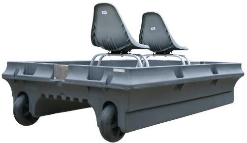 additional buoyancy and rigidity under foot. Complete with chairs and wheels for easier access to secluded areas, the Bass Baby weighs a slight 143 lbs and is rated to carry a 475 lb load, while meeting the strict safety regulations of the U.S.Coast Guard. |